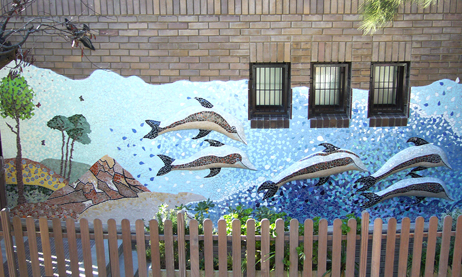 Estació 'Estiu', trencadís i ceràmica cuita, escola La Miranda, Barcelona, 2008.